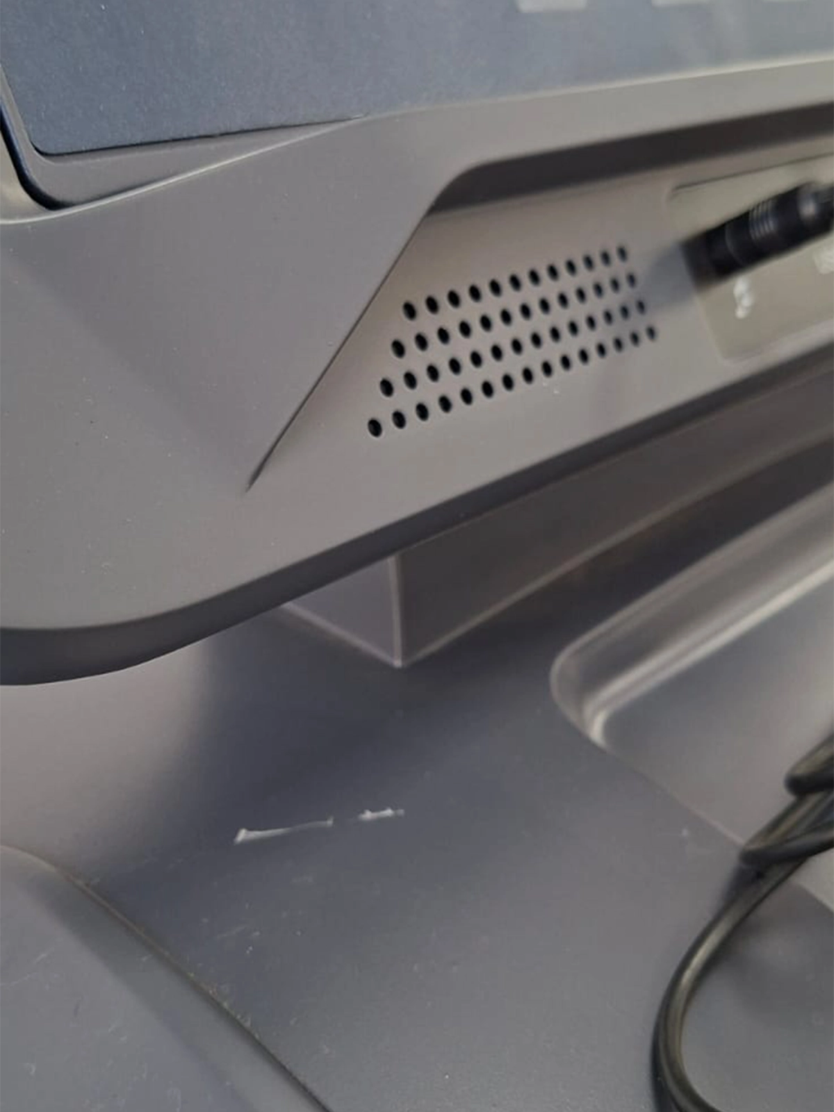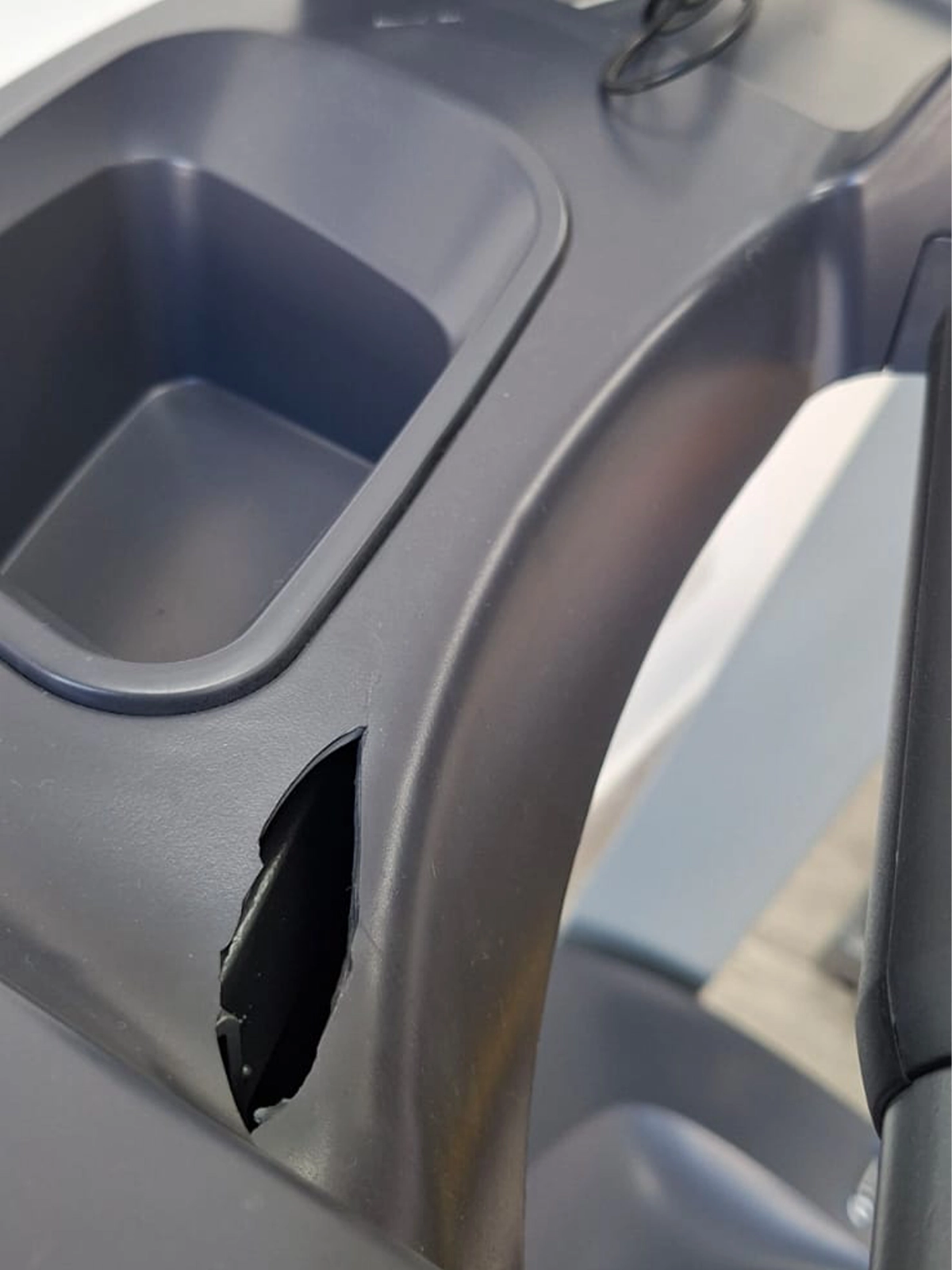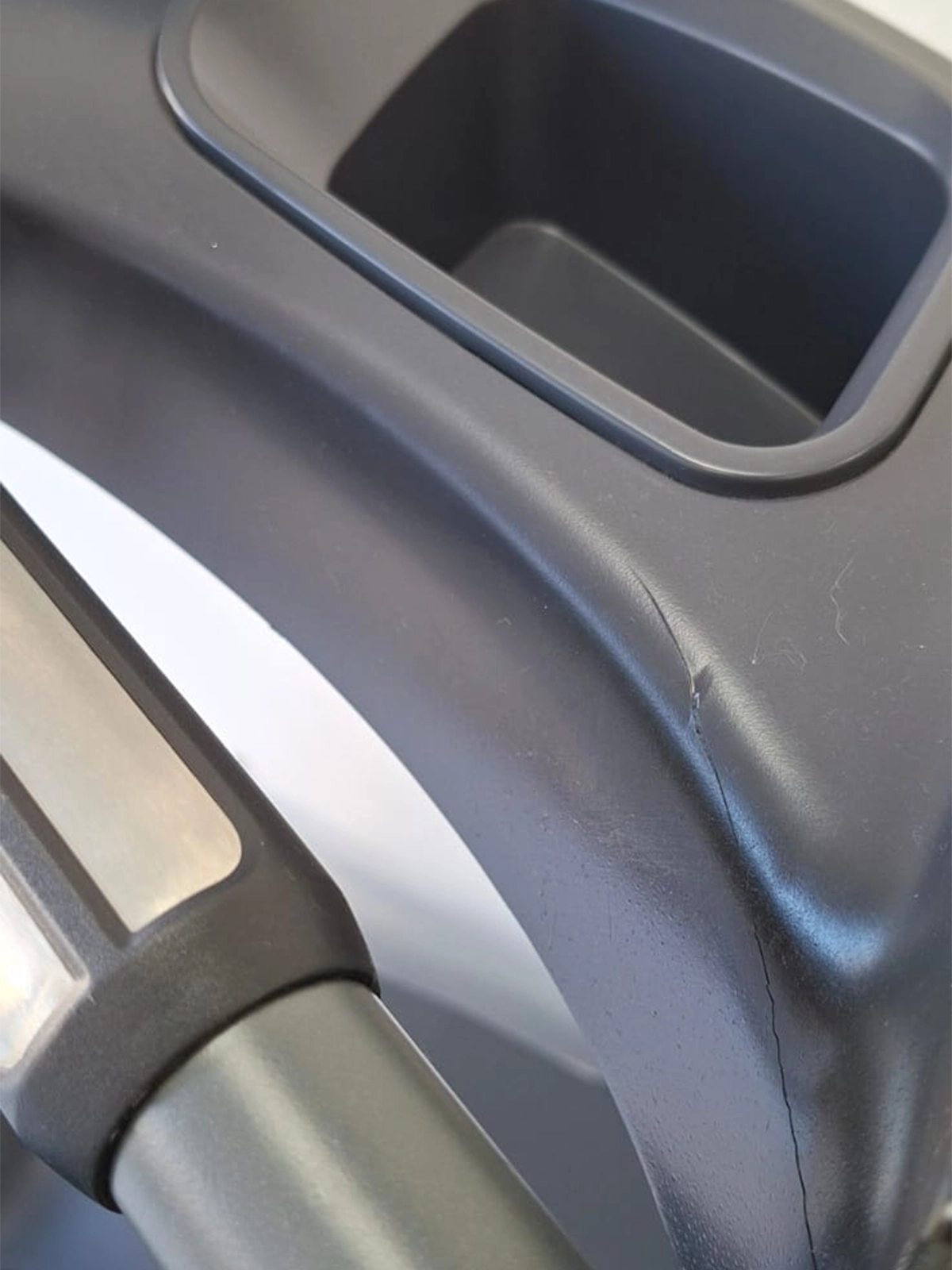 Cuadro y plásticos marcados. Display flojo producto de rotura en el plástico de agarre